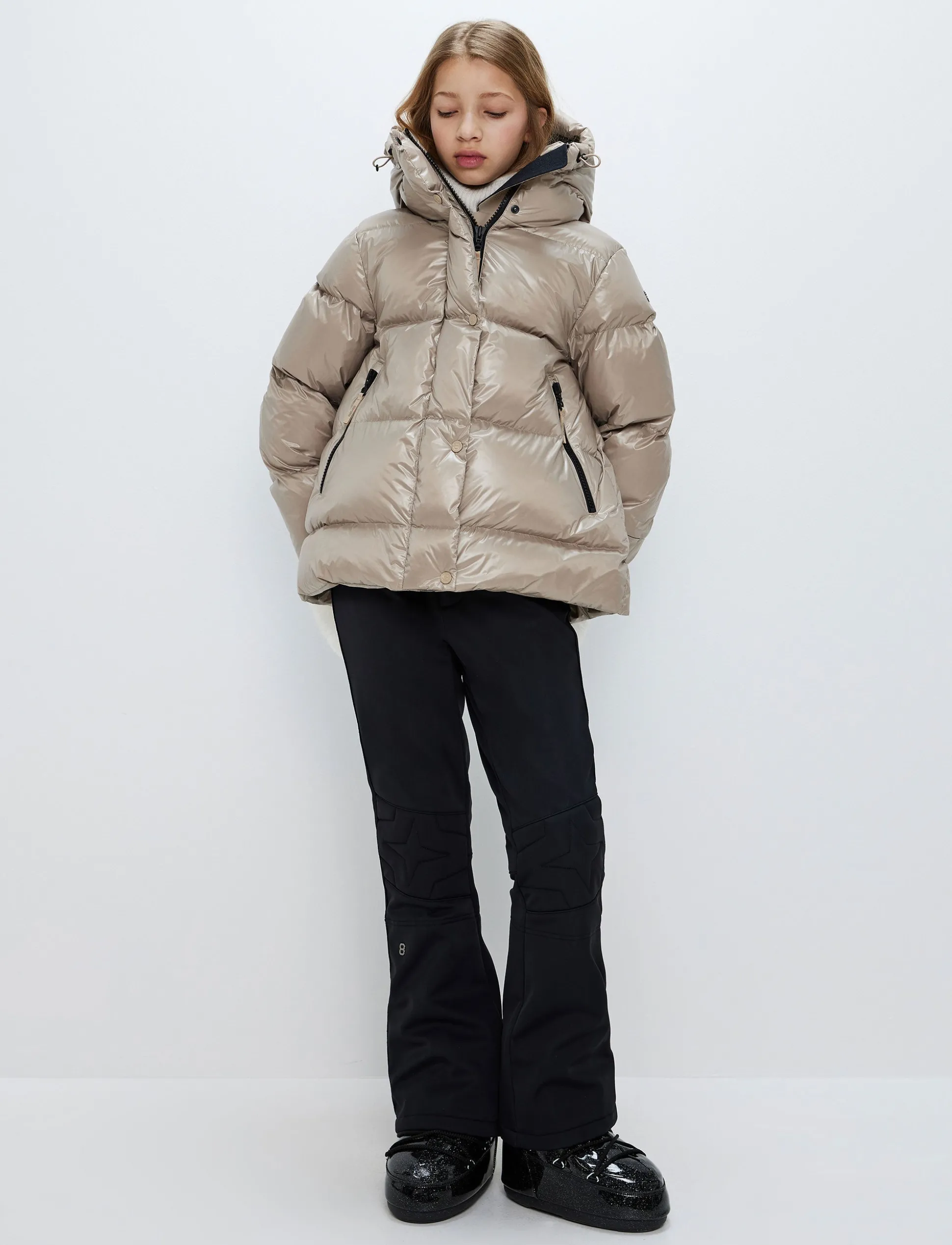 Varm och lätt puffer med högsta komfort och alla tekniska detaljer för skidåkning och vinteraktivitet.