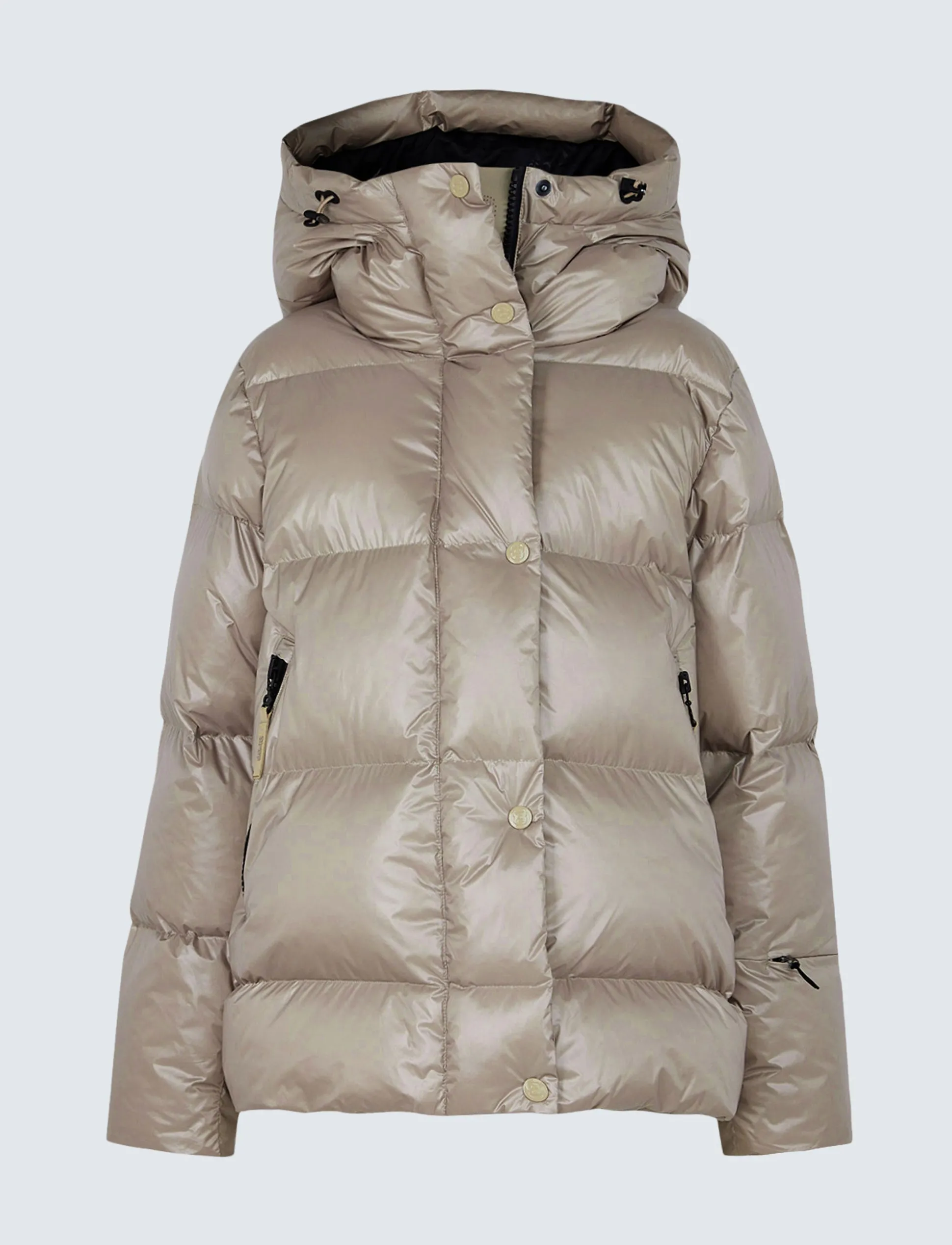 Varm och lätt puffer med högsta komfort och alla tekniska detaljer för skidåkning och vinteraktivitet.